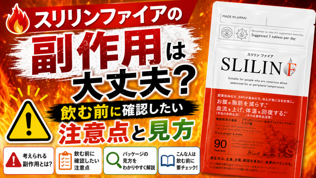 この記事では、スリリンファイアの副作用が気になる方に向けて、公式販売ページと消費者庁の機能性表示食品の考え方をもとに、飲む前に確認したい注意点を整理します。 結論からいうと、スリリンファイアは医薬品ではなく機能性表示食品なので、薬のような... ダイエット