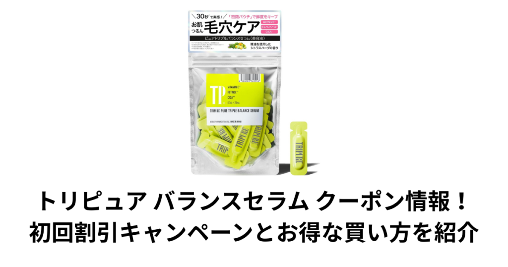 この記事では、トリピュア バランスセラムのクーポンや初回キャンペーン情報について解説します。 結論から言うと、トリピュア バランスセラムは一般的なクーポンコードが配布されているケースは少ないものの公式サイトの初回限定キャンペーンを利用するこ... -