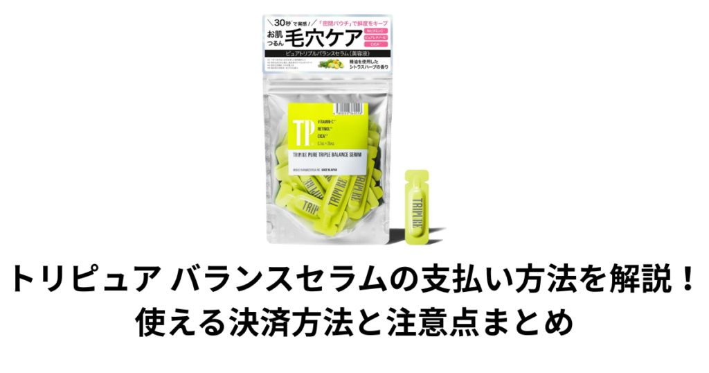 この記事では、トリピュア バランスセラムの支払い方法について詳しく解説します。 結論からいうと、トリピュア バランスセラムはクレジットカード・PayPal・後払い・代金引換など複数の決済方法に対応しており、自分に合った支払い方法を選んで購入するこ... -
