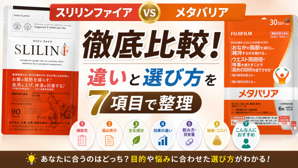 この記事では、スリリンファイアとメタバリアの違いを、公式情報をもとにわかりやすく整理します。 成分名だけでなく、何に向いているか、飲み方や続けやすさまで比較して判断しやすい形にまとめました。 結論からいうと、冷えや血流も含めておなかまわり... -