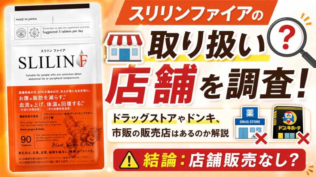 この記事では、スリリンファイアの取り扱い店舗について解説します。 スリリンファイアはドラッグストアやドンキなどの実店舗では販売されていない可能性が高く、主に通販で購入できるサプリメントです。 店舗を探しても見つからない場合があるため、事前... -