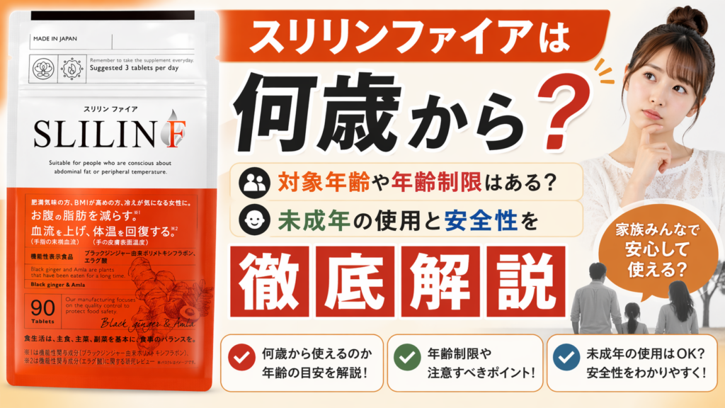 この記事では、スリリンファイアは何歳から使えるのか、子供や未成年でも大丈夫なのかについて分かりやすく解説します。 スリリンファイアは成人向けのサプリメントであり、未成年や子供の使用は基本的に推奨されていません。 成長期の体には負担となる可... -